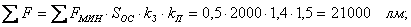 где ∑FМИН – требуемая освещенность для отдельных участков, ∑FМИН= 0,5 лк;