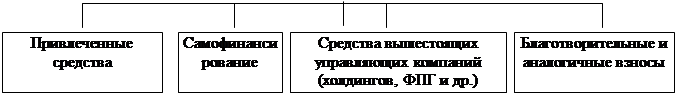 Более детальная классификация источников финансирования инвестиций с учетом их деления на внутренние (собственные) и внешние по отношению к инвестируемому объекту представлена на рисунках 1 и 2.