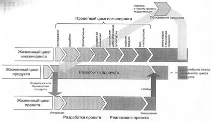 Рис. Жизненный циклы проекта, продукта и инжиниринга