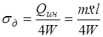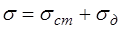 Напряжения в элементе конструкции при действии динамической нагрузки состоят из напряжения от статической нагрузки, включая собственный вес элемента, сложенного с динамическим напряжением вызванным вибрацией: