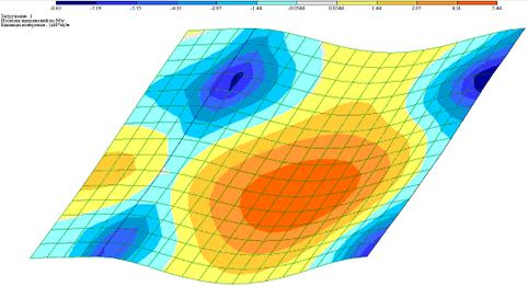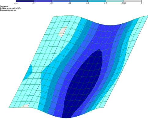 Приведём ниже схему деформирования плиты перекрытия и определим максимальный прогиб для каждого из вариантов.