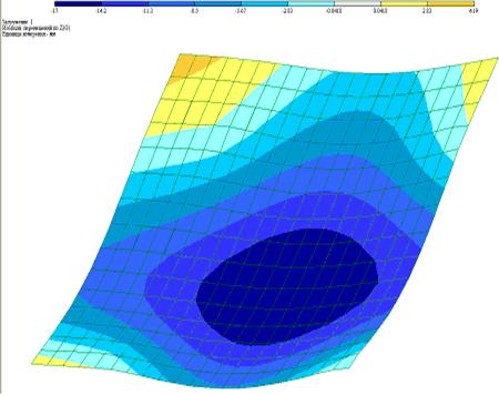 Наибольший прогиб для монолитного варианта плиты перекрытия наблюдается в конечном элементе №486.