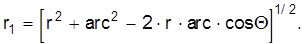 x = r×cosq - arc; (2.21)