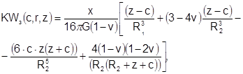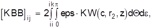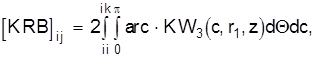 Коэффициенты матрицы KRB вычисляются с использованием фундаментального решения Миндлина KW3 и интегрирования выражения