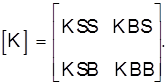 Если учитываются вертикальные перемещения грунта примыкающего к поверхности фундамента, только от действия вертикальных сил, приложенных на боковой поверхности (KSS, KSB) и на нижнем конце (KBS, KBB), то глобальная матрица К имеет вид