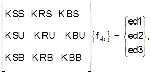 {fsb} - вектор-столбец, содержащий неизвестные: касательные напряжения на боковой поверхности фундамента t, горизонтальные напряжения на боковой поверхности фундамента s2 и вертикальные напряжения на нижнем конце фундамента s1;