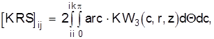 Коэффициенты матрицы KRS вычисляются с использованием фундаментального решения Миндлина KW3 и интегрирования выражения