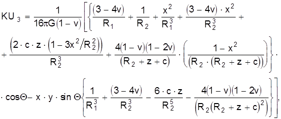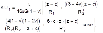 Фундаментальное решение Миндлина в матрице KRU определяется формулой
