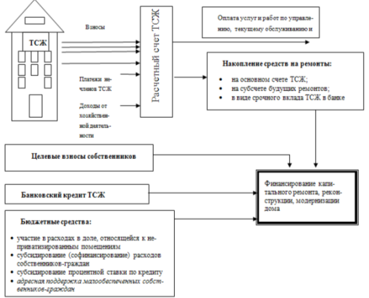 Сочетание возможных источников финансирования капитального ремонта многоквартирного дома схематически представлено на рисунках 1 и 2.