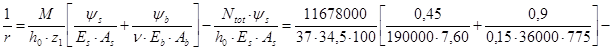 где z1= h0-0,5hf'=37-0,5·5=34,5 см - плечо внутренней пары сил