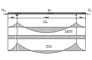 → условие выполняется, поэтому начальные трещины не образуются. Расчёт по раскрытию трещин. Изгибающий момент от нормативных нагрузок