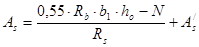 3.Если принятая площадь сечения сжатой арматуры A1s существенно превышает её значение, вычисленное по формулам (15) и (16), например, при отрицательном значении A1s, то площадь сечения растянутой арматуры согласно условиям (19)-(21):