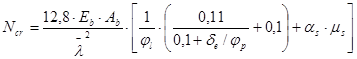 3. Если l*o/h*n>4 , то для сечения III-III определяют условную критическую силу Ncr, η и e* с использованием формул (38) – (41).