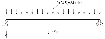 При частом расположении балок настила (шаг а1 = 1,5 м < l/5 = 15/5 = 3 м) сосредоточенную нагрузку, передаваемую на главную балку от балок настила, заменяем равномерно распределенной нагрузкой.