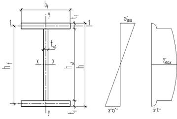 Сечение сварной балки двутавровое симметричное, составленное из трех металлопрокатных листов. Выбираю сталь С 345, с расчетным сопротивлением Ry = 300 МПа (толщина проката 20÷40 мм).
