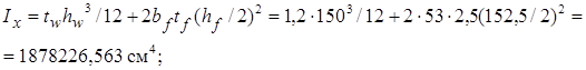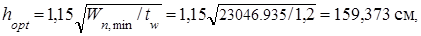 здесь tw – толщина стенки балки, предварительно определяемая по эмпирической зависимости tw = 7 + 3h/1000 = 7 + 3·1500/1000 = 11,5 мм.