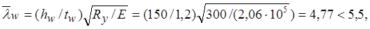 Проверяем необходимость постановки продольных ребер жесткости. Условная гибкость стенки
