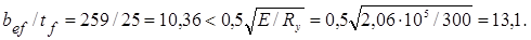 = (530–12)/2 = 259 мм к его толщине tf должно быть не более предельного, определяемого по СНиП [1],