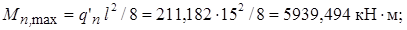 где fu = l/225 = 0,0044 при пролете l = 15 м – предельный прогиб главной балки.