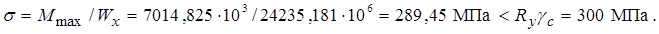 где Ry = 300 МПа при толщине проката более 20 мм;