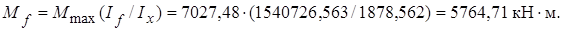 , где r – радиус кривизны, кривизне ее составляющих: стенки Mw /(EIw) и поясов Mf /(EIf), находим изгибающие моменты в стенке Mw и поясах Mf, которые распределяются пропорционально их жесткостям, соответственно EIw и ЕIf. Момент инерции стенки