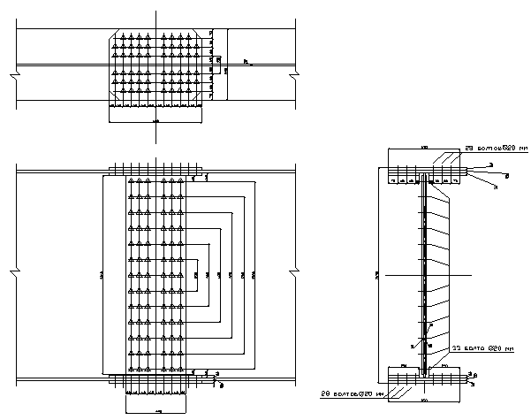 Рис. 15. Монтажный стык главной балки на высокопрочных болтах