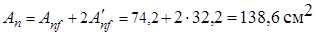 Принимаем верхнюю накладку из листа 680´530´14 мм площадью сечения Аnf = 74,2 см2; и две нижних из листа 680´230´14 мм с площадью сечения