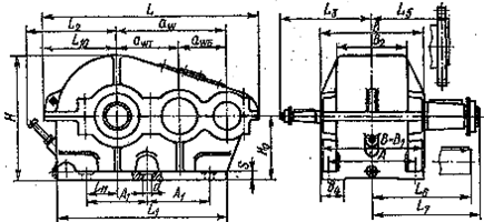 Выбираем цилиндрический горизонтальный двухступенчатый редуктор Ц2-200. Первые ступени редуктора – раздвоенные шевроны, вторые - косозубые. Твёрдость рабочих поверхностей зубьев шестерён 40-45 HRC, колёс 260-290 HB. КПД редуктора ηредук = 0,96.
