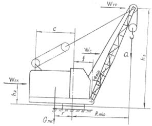 где Wс = 4,6 кН - ветровая нагрузка на стрелу;