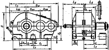 Выбираем цилиндрический горизонтальный двухступенчатый редуктор Ц2-200. Первые ступени редуктора – раздвоенные шевроны, вторые – косозубые. Твёрдость рабочих поверхностей зубьев шестерён 40-45 HRC, колёс 260-290 HB. КПД редуктора ηредук = 0,96.