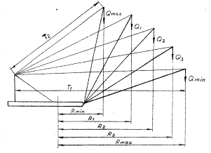 Рис. 8. Схема стрелоподъёмного механизма при различных вылетах.