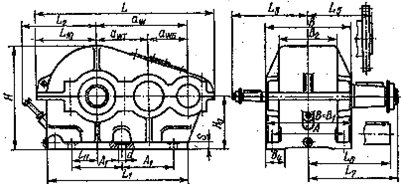 Выбираем цилиндрический горизонтальный двухступенчатый редуктор Ц2-200. Первые ступени редуктора – раздвоенные шевроны, вторые – косозубые. Твёрдость рабочих поверхностей зубьев шестерён 40-45 HRC, колёс 260-290 HB. КПД редуктора ηредук = 0,96.