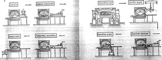 Сущность мартеновского процесса состоит в переработке чугуна и металлического лома на паду отражательной печи. В мартеновском процессе в отличие от конвертерного не достаточно тепла химических реакций и физического тепла шихтовых материалов. Для плавление твердых шихтовых материалов, для покрытия значительных тепловых потерь и нагрева стали до необходимых температур в печь подводиться дополнительное тепло, получаемое путем сжигания в рабочем пространстве топлива в струе воздуха, нагретого до высоких температур.