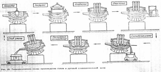 Рисунок 8 Технологическая схема производства стали в дуговой сталеплавильной печи