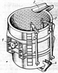 Тигель печи изготавливается набивкой или выкладывается кирпичом. Для набивки используют молотые огнеупорные материалы - основные (магнезит) или кислые (кварцит).