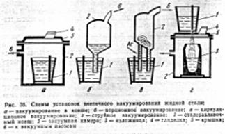 Существует большое количество методов вакуумной обработки стали. Некоторые принципиальные схемы приведены ниже: