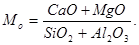 Модуль основности – отношение содержащихся в шлаке основных оксидов к сумме кислотных, %: