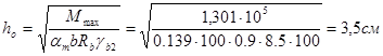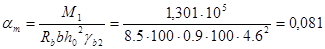 М1 - изгибающий момент в первом пролете, Н см, h0 - рабочая высота плиты, см, Rв - расчетное сопротивление сжатию бетона. По таблице по величине am =0,081 находим x =0,085 n = 0,9575. Выполним проверку сопоставления x и x R, где xR - граничное значение высоты сжатой зоны бетона: