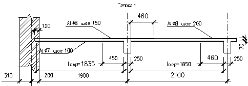 Экономически наиболее целесообразно принять арматуру d = 6 ммАs = 0.283 см2 c шагом 200 мм.