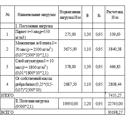 Таблица 3 Нормативные и расчётные значения нагрузок на 1 п. м второстепенной