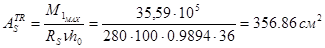 w = 0,85 - 0,008* Rb*gb2= 0,85 - 0,008 * 8,5 * 0,9 = 0,7888, x = 0,021< xr=0,681 - условие выполняется. Определим требуемую площадь продольной арматуры: