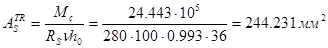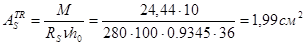 M = 24.434 кН*м, b = 20см h0 = 36см