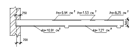 При определении сечения продольной арматуры на промежуточных опорах и в средних пролётах по отрицательным изгибающим моментам в расчет вводится только ширина ребра балки b.