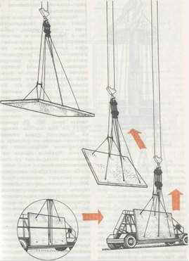 Переконавшись в надійності стропування, він відходить у безпечну зону і дає команду підняти панель. Машиніст крана плавно піднімає плиту.