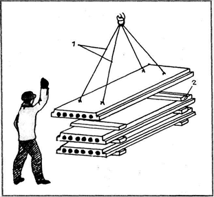 Стропують плити міжповерхового перекриття чотиривітковим стропом і подають до місця укладання у горизонтальному положенні. Склад ланки становить 4 чоловіка.