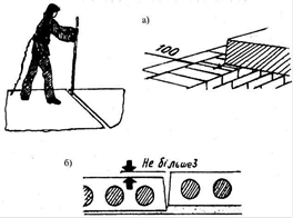 Попередньо на опорну поверхню стіни розстеляють розчинову постіль завтовшки 10-15 мм.