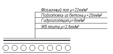 Постоянная Мозаичный пол 0,04 22 Подготовка из бетона 0,03 20 Гидроизоляция 0,003 6 Железобетонная плита Итого Временная для магазина Полная |