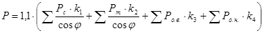 – коэффициент, учитывающий потери мощности в сети;