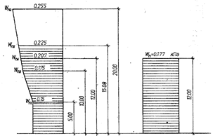 Согласно рис. 4, вычислим значения нормативного давления на отметках верха колонн и покрытия: