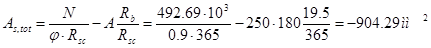 Ared=A+α·Asp,tot= 250·200+6,129·804 = 54927 мм2